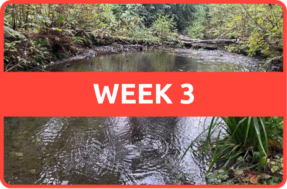 Next week is boasting consecutive rainy days with cloud cover and temperatures in the high 50s. This will mean more fish may be taking advantage of this cooler system, entering the streams with each rain event. This may also mean that water may become murky and difficult to see into. Take time along the lookouts to watch for movement from fish navigating the waters. This also means that we may begin seeing coho suffering from Urban Mortality Runoff Syndrome (URMS) with these early rain events. If you see a fish suffering from URMS please take a video of the fish, send to Piper and update the Volunteer Folder (found in the Volunteer Portal) and contact Piper.