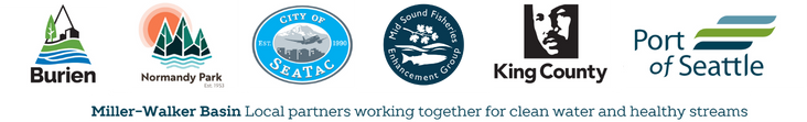 Volunteers have been reporting seeing tons of tiny salmonids (fish in the salmon family) in the stream. But who are they? In both Miller and Walker we have juvenile coho (oncorhynchus kisutch) who spend the first year of their lives in the streams. We also have resident cutthroat trout (oncorhynchus clarkii) – which are part of the salmon family. When you’re out in the stream, these fish are easy to confuse as they have similar markings that allow them to camouflage perfectly with their surroundings, and they dart quickly to shadowed areas for protection when they see us, or other predators, approaching.