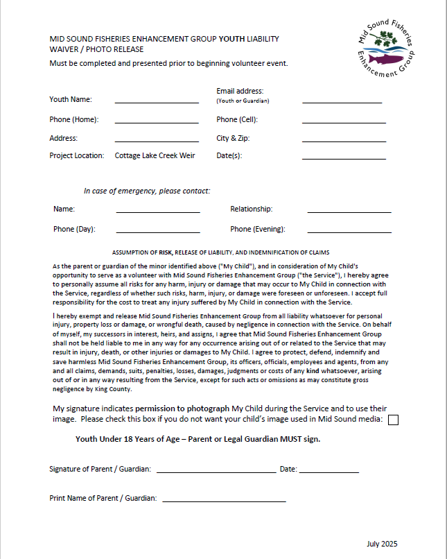 Youth Volunteer Waivers